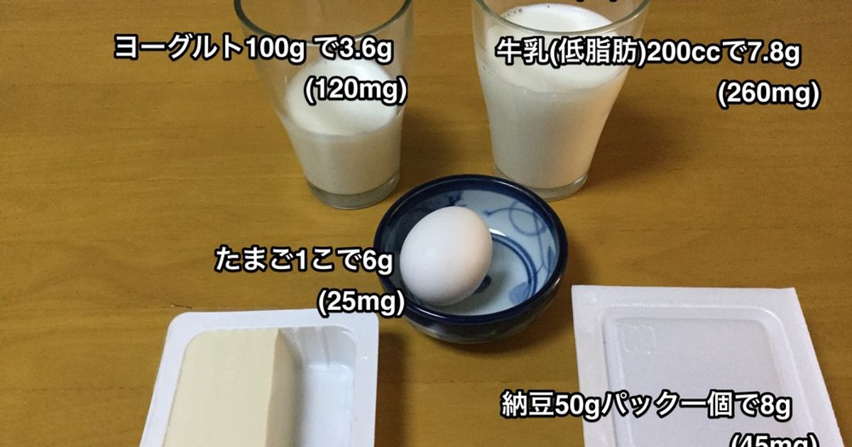 推奨される一日の摂取たんぱく質量は成人女子で50g。男子で60g。